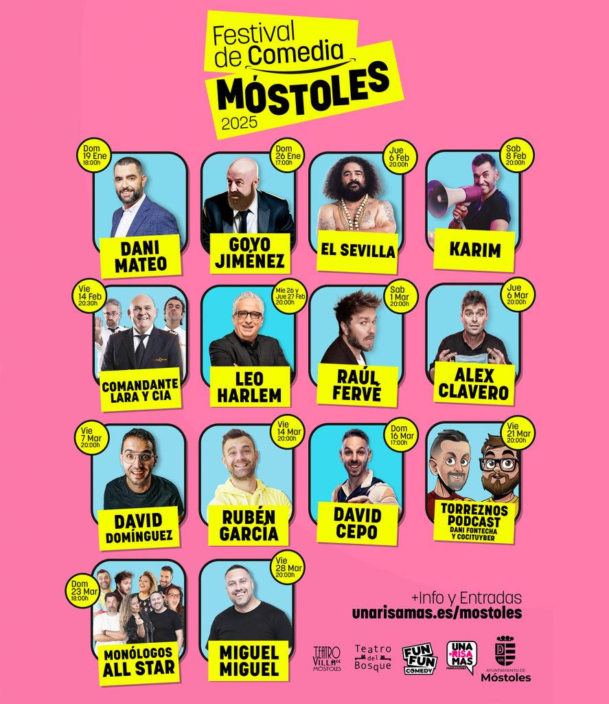 Desde su primera edición, el Festival de Comedia de Móstoles ha ofrecido al público buenos momentos cargados de humor, talento y grandes risas. A lo largo de los años, hemos contado con algunos de los mejores cómicos del país, espectáculos que han colgado el cartel de «Sold Out» y una programación diseñada para celebrar la comedia en todas sus formas.