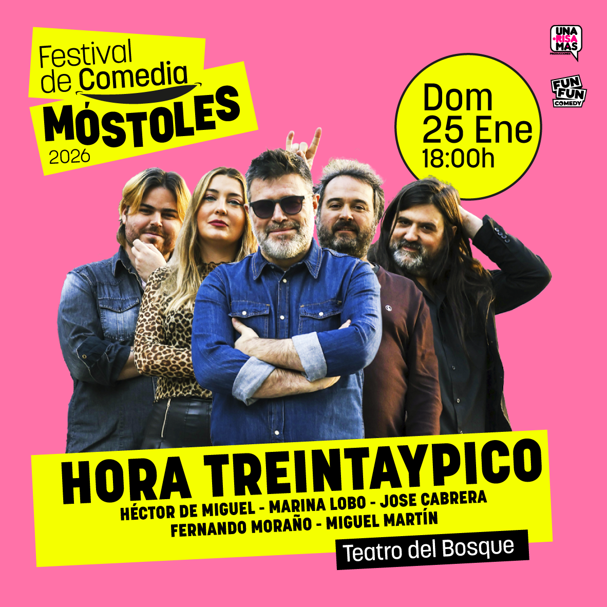 Disfruta el 25 de Enero de «Hora Treintaypico: El Show» en la III Edición del Festival de Comedia de Móstoles 2026.
